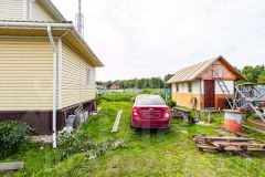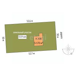 Участок площадью 15,9 соток огорожен забором по периметру, предоставляя приватность и пространство для благоустройства.