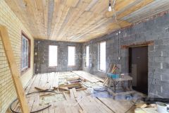 Дом строили для себя , на совесть. Фундамент: железно-арматурный каркас, бетон и сваи. Стены пеноблок, 2 вида утеплителя плюс гидроизоляция, облицовка кирпич. Дом в предчистовой отделке: стены оштукатурены и зашпаклеваны, стяжка пола.