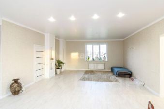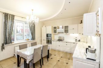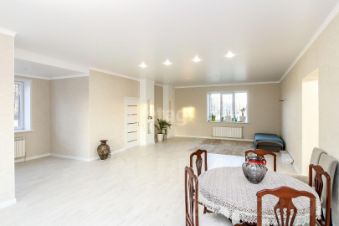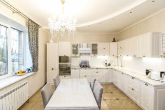 В доме есть большой цокольный этаж с теплыми полами, 5 комнат (котельная с постирочной, 2 кладовки, комната для отдыха с теннисным столом). На полу, где плитка, теплые водяные полы. В остальных комнатах постелен качественный, дорогой ламинат. На стенах дорогие обои и натяжные потолки с дорогими люстрами.
