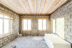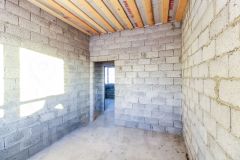 Высота помещений 2,7. Несущие стены выполнены из газобетона с применением U-образных блоков для перемычек над окнами и дверьми, а так же армопояса. Облицовка-керамический кирпич. Перекрытия потолка-дерево с утеплением. Вальмовая крыша покрытая профнастилом.