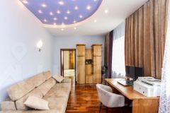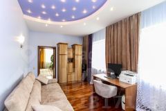 На втором этаже располагается зона отдыха, состоящая из большого холла 53.2 кв.м, двух спален с гардеробными (21 и 16.5 кв.м), детской комнаты 18.2 кв.м. (в настоящее время используется как кабинет), большая застекленная лоджия обшитая пробкой 13.1 кв.м, шикарный санузел 5.7 кв.м. с окном!