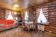 Дом: тёплый, из бревна, с печью и верандой. Есть погреб.