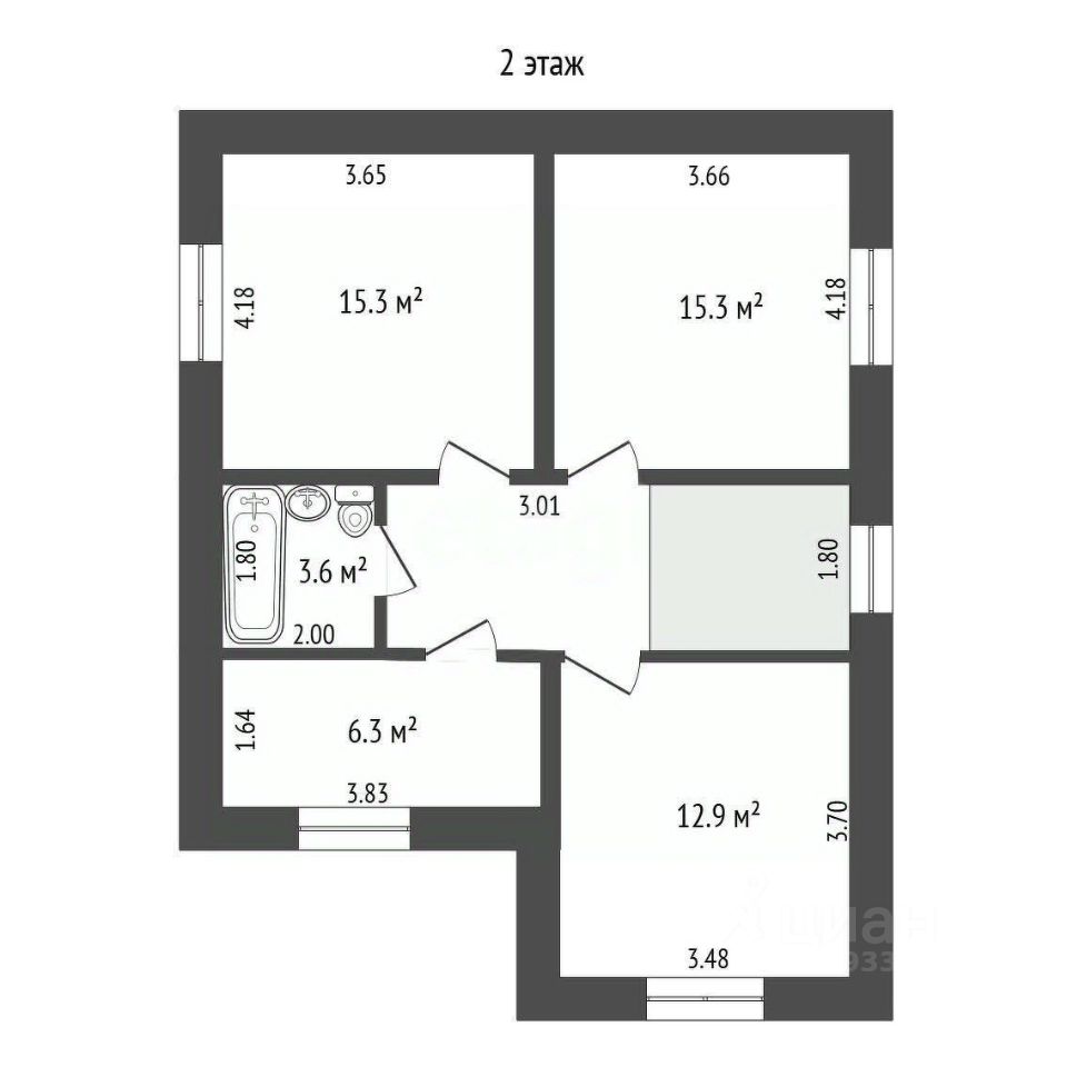 Три отдельных спальни, основной большой санузел с окном и хозяйственная комната. Можно обустроить гардеробную.