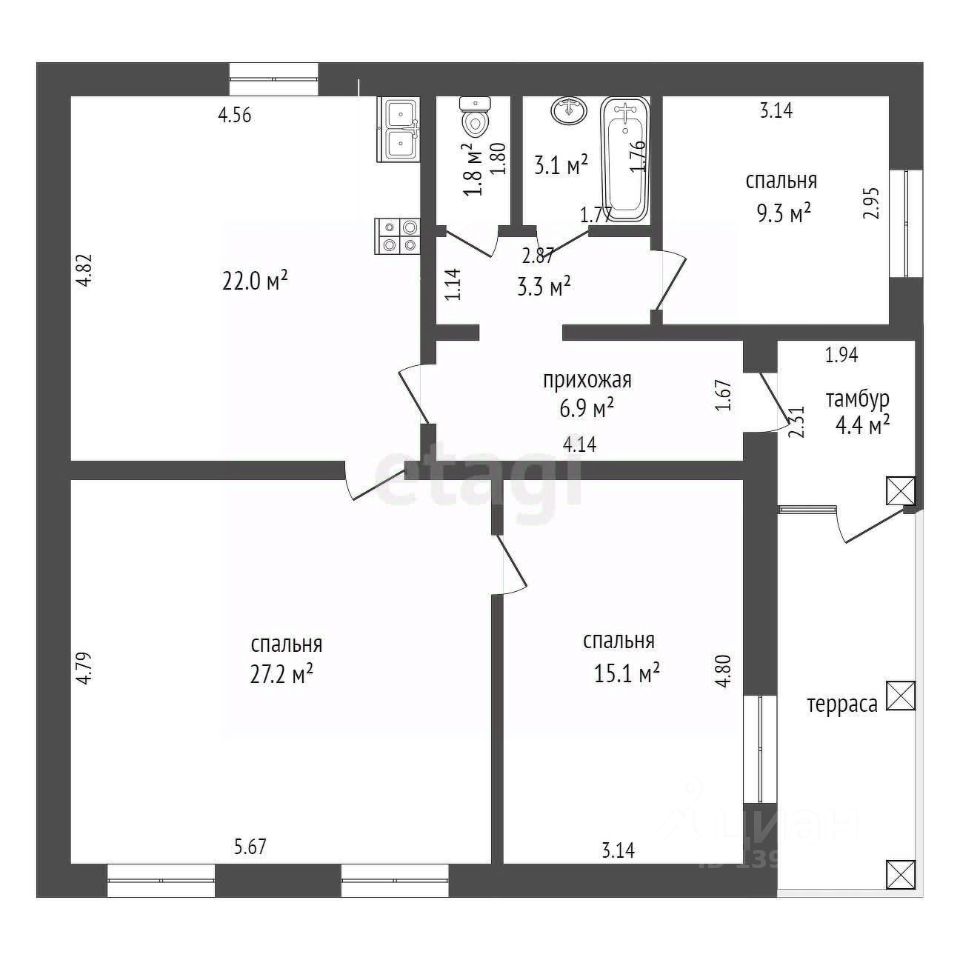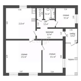- Планировка: кухня-гостиная, 3 спальные комнаты, раздельный санузел.