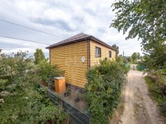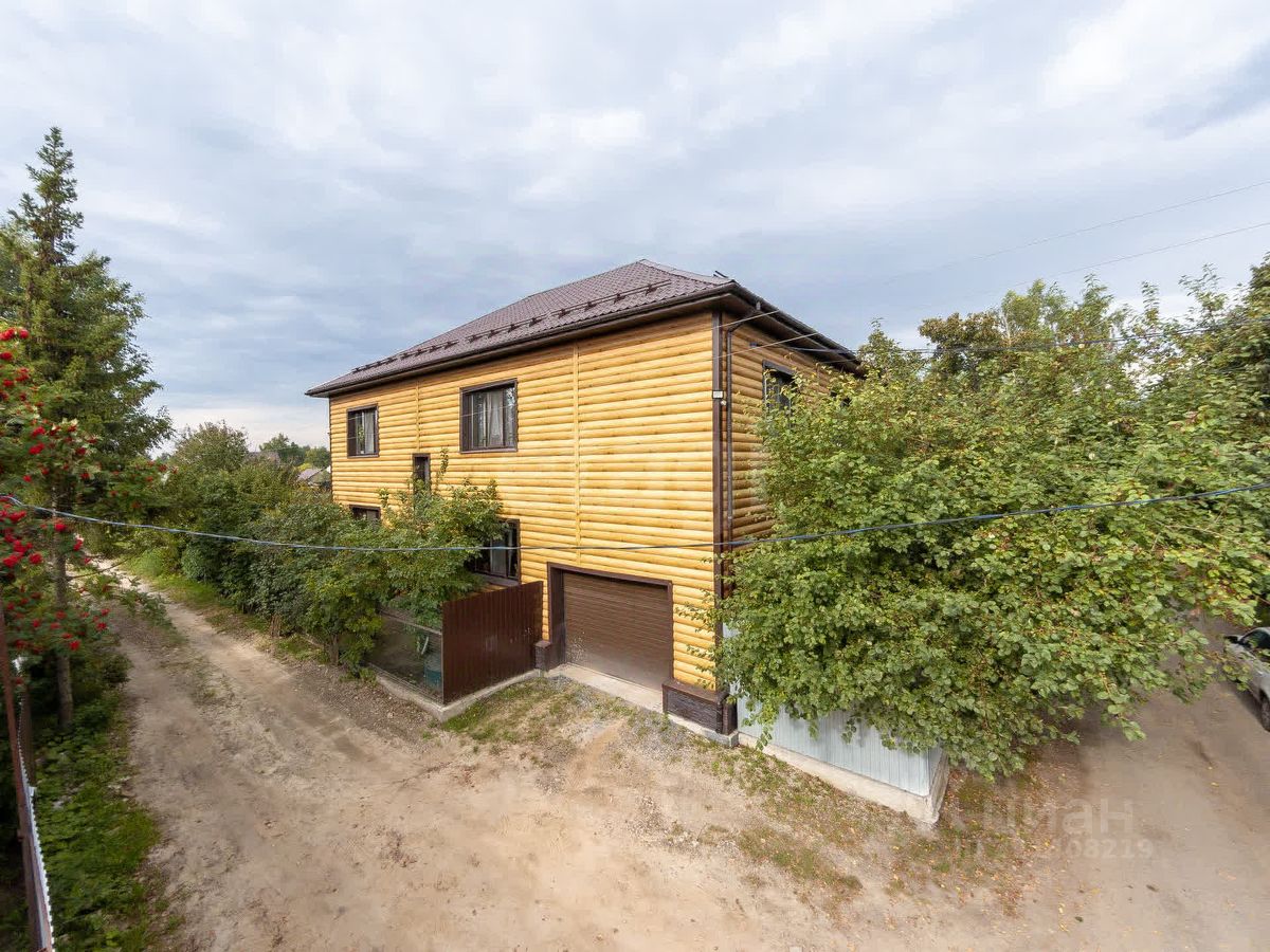 Дом из бруса площадью 232 кв. м с пристроенным гаражом (35 кв. м) . На первом этаже находится просторная кухня-гостиная (38 кв. м) просторный холл, сауна, отдельный санузел, выход в гараж,. Второй этаж включает четыре изолированные спальни (14, 15, 16 и 17 кв. м), большую гардеробную (11 кв. м), санузел и холл (24 кв. м). Высота потолков — 3 метра, установлены современные пластиковые окна, обеспечивающие хорошее естественное освещение. Коммуникации централизованные: водопровод, отопление от комбинированного котла (электричество и твердое топливо), заключен договор на подключение газа — магистраль уже подведена к обществу. Автономная канализация представлена двумя септиками, дополнительно установлена система видеонаблюдения.