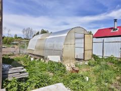 На участке уже имеются теплица, скважина, баня и сарай. Баня требует внутренней отделки, но предбанник утеплен, а веранда застеклена пластиковыми окнами, что создаст уютное пространство для отдыха.