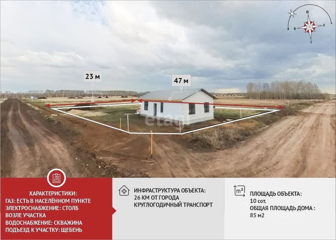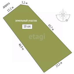 Дом расположен на земельном участке в 10 соток, и имеет удачное расположение за счет двух фасадов, что позволит зонировать ландшафт по своему усмотрению: возможно построить баню, обустроить мангальную зону, высадить прекрасный сад с плодовыми деревьями, сделать зону отдыха и посеять газон.