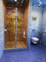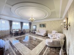 В отделке использованы качественные материалы: плитка на первом этаже, ламинат 33 класса на втором и влагостойкая венецианская штукатурка в помещениях верхнего уровня. Дизайнерские гипсовые потолки добавляют интерьерам индивидуальности. Лестница из бука. Качественные массивные межкомнатные двери.