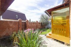 На ухоженном участке вы найдете баню, где можно расслабиться после долгого дня, а также гараж, вмещающий два автомобиля. Для приятных вечеров с друзьями предусмотрена беседка, где можно наслаждаться свежим воздухом и природой.