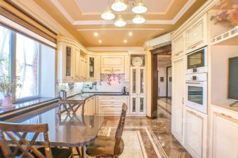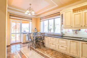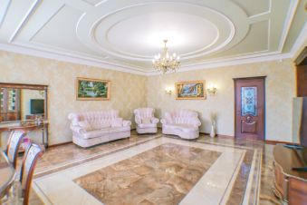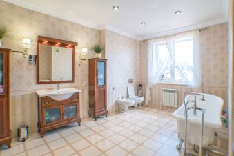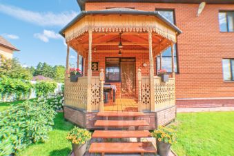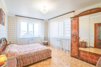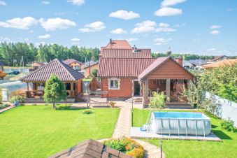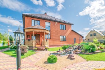 Уютный дом из керамзито блока утеплен пенофолом отделан кирпичом, на тихой, небольшой, тупиковой улице, рядом с лесом и добропорядочными соседями. В села Перевалово 14 км. от г. Тюмень по четырёхполосной трассе М- 12 Тюмень - Екатеринбург. В селе имеется вся инфраструктура детский сад, современная 11 летняя школа, поликлиника, почта, МФЦ, храм, много частных и сетевых магазинов, ПВЗ всех плей маркетов, асфальтированные дороги. Дом расположен на земельным участке 18 сот. правильной формы так же расположен летний дом 50 м2 с верандой где находится печь с камерой русской печи,мангал и печь для казана. Баня 6х6м. на дровах из цельного бревна с верандой, две теплицы с эл. подогревов почвы, грядки для выращивания овощей и ягод. На участке посажены и плодоносят фруктовые деревья и ягодные кустарники, декоративные деревья, цветники, альпийская горка с водяным каскадом с подсветкой, освещением дорожек, место для каркасного бассейна на 8 м3, на участке посажен газон с автополивом. В доме три спальни 34,8 24,9 18,8 м2 на втором этаже, гостевая комната 18 м2 на первом этаже, просторные ванные комнаты 7,3 м2 на первом и 14.6 м2 на втором этаже, кладовая 3,6 м2 на первом, гардеробная 6,5 м2 на втором, хол первого 24,7 м2 кухня 16,2 м2 с выходом на летнюю веранду, гостинная 44,4 м2, гараж 41 м2, котельная 9 м2. В котельной установлен газовый котёл Proterm 38 Квт. эл.котёл Proterm 24 Квт. водонагреватель Ariston 100 л. скважина 20 м. колонна водоподготовки, в гараже имеются стеллажи для хранения шин на две машины и металлические стеллажи для хранения материалов и инвентаря. В доме пол первого этажа выложен из глазированной кафельной плитки с орнаментом, комфортный тёплый пол по всему этажу так же установлены радиаторы отопления под каждым окном. В холе первого этажа на потолке установлено световое пано, в душевой ванной комнаты выложено красивое пано из слайсов. Мебель кухни фабрики Hi-Tech, техника Bosch, холодильник Liebherr, кондиционер Toshiba. Гостинная комната обставлена мебелью фирмы Миасс с большим обеденным столом. По первому этажу и в холе второго этажа сделаны многоуровневые потолки из гипсового лить, стены холла первого и второго этажа отделаны венецианской штукатуркой. Лестница на второй этаж начинается с резного заходного столба изготовлена из бука, освещена большим панорамным окном. Все спальни обставлены мебелью в большой установлен кондиционер Toshiba. Ванная комната оборудована санитарными проборами, установлена акриловая ванна, стиральная машина LG на 7 кг. в гардеробной установлена система Титан GS. В доме установлена охранная сигнализация и видеонаблюдение, въездные и гаражные ворота автоматические