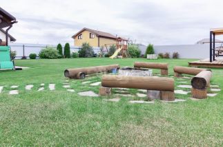 4. В доме предусмотрены все современные удобства: теплые полы, газовое отопление, кондиционер, камин, а также скважина, колодец и септик. Для детей оборудована игровая площадка, где они смогут весело проводить время на свежем воздухе.