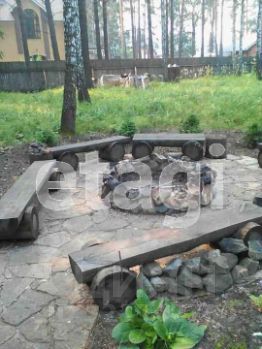 Во дворе сделаны хоз постройки, вольер для собаки. На участке растут большие сосны, берёзы. Тротуары выложены из камня, оборудована мангальная зона и зона разведения костра обложена камнями, чтобы вы могли проводить вечера на природе в безопасности.