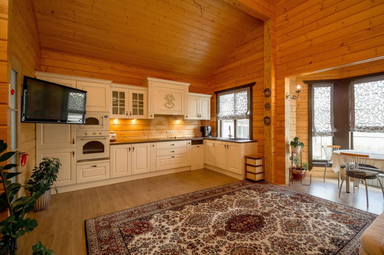 Потолок в гостиной свыше 5 метров. Дом продаётся с современной мебелью и техникой.