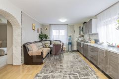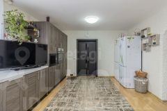 На первом этаже имеется большая гостиная, кухня, прихожая и ванная комната. На втором: спальня и санузел. Теплый пол в санузле и прихожей.
