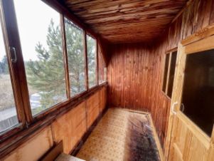 Дом площадью 25 м² на первом этаже с камином и уютной планировкой: просторная гостиная, компактный коридор, кухня в утепленном пристрое (стены и пол дополнительно утеплены). На втором этаже — спальня и балкон. Вся мебель остается, включая кухонную технику и стиральную машину. Коммуникации продуманы: скважина с подачей воды в раковину и машинку, слив в выгребную яму.