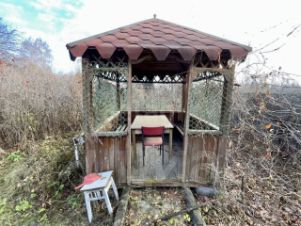Территория благоустроена: баня с высокой теплоотдачей, беседка для отдыха, плодовые деревья (две яблони, груша, вишня) и кусты смородины. Участок требует минимального ухода — забор и прилегающая зона нуждаются в косметическом ремонте после двухлетнего простоя.