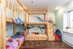 ПЛАНИРОВКА: Общая площадь дома 161.8 кв.м. На 1-м этаже большая кухня гостиная 37.2 кв.м с выходом на террасу, просторная ванна комната. отдельная котельная. Также на первом этаже гостевая комната (или родительская ) 12,7 кв.м, под лестницей место для хранения разного инвентаря.