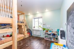 На 2-м этаже 4 комнаты - первая 12.9 кв.м, две спальни по 18 кв.м, небольшой кабинет 8,1 кв.м, ванна с окном и инсталляцией.