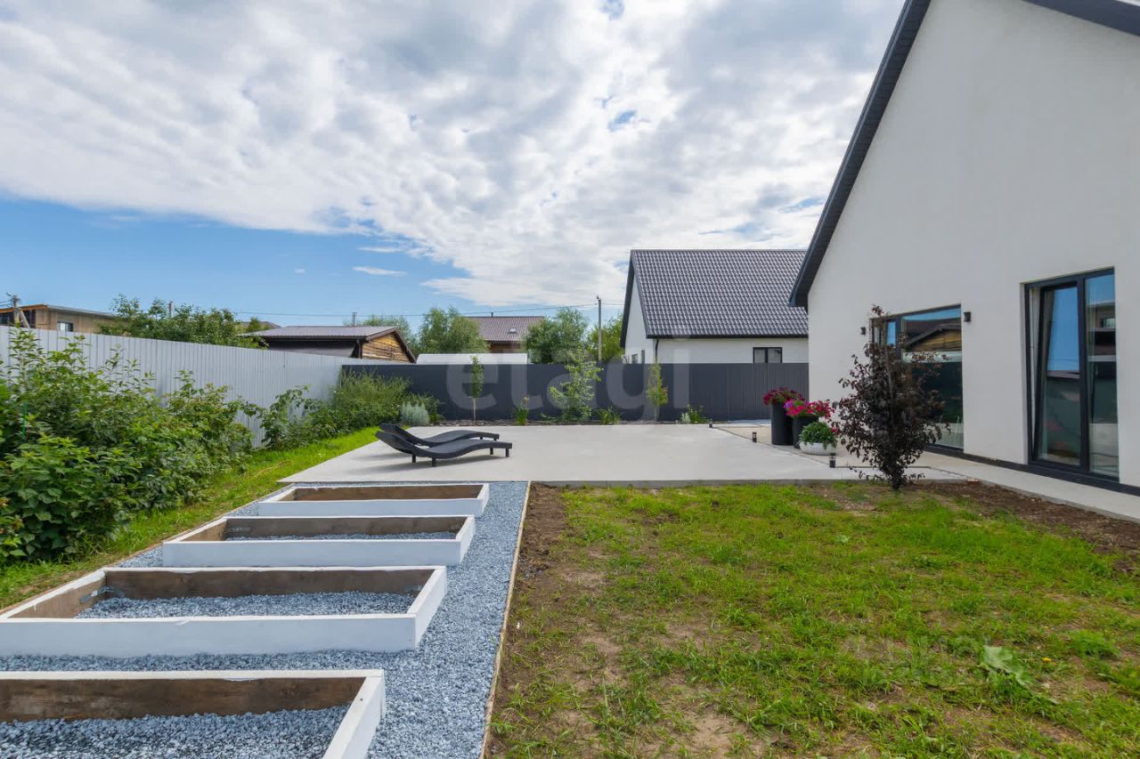 Участок огорожен со всех сторон и облагорожен декоративными растениями и деревьями , а также выделена зона отдыха, где расположены шезлонги и мангальная зона. Имеется выполненный в одном с домом стиле хозяйственный блок с остеклением, для хранения инвентаря и инструмента.