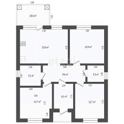 О доме: 105м2: совмещённая кухня-гостиная, ТРИ изолированные спальни, котельная, санузел,коридор и высокие потолки.