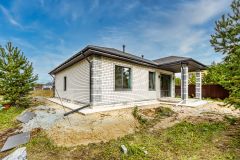 Дом ,у которого залита плита на сваях,построен из КЕРАМЗИТОБЛОКА+ утеплитель пенополистирол и отделан КИРПИЧОМ(мягкая крыша и утеплитель250мм) :тётплый ,современный ,функциональный дом с террасой с полным комплектом коммуникаций для комфортного круглогодичного проживания для ВАС полностью ГОТОВ! В доме окна перфорировыанные с ИИ,сдается с вапйт бокс,как на фото,но для вас можем сделать частичный РЕМОНТ.