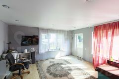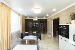 Дом имеет 3 комнаты: 3 отдельные спальни по 12 кв.м. и кухню-гостиную 27 кв.м., отдельная гардеробная, кладовка. В доме выполнен хороший ремонт. Все коммуникации подключены и разведены по дому: электричество, водопровод, отопление, септик, газ, колодец. Цокольный этаж под всем домом, отапливаемый.