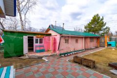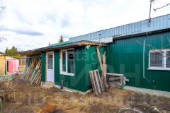 Дом расположен на участке площадью 9 соток. Участок ровной прямоугольной формы с широким фасадом. На нем построены гараж, баня, дровенник/сарай. По середине участка оборудована большая беседка с мангальной зоной для веселых семейных посиделок. В центре участка сделан просторный заезд и место под парковку двух автомобилей.