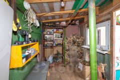 Огород заслуживает отдельных слов. Построена большая теплица 10*3 метров, по всему участку посажены различные кусты и деревья (вишня, смородина, груша, клубник, земляника, крыжовник). На зиму собственники укрываются от морозов. По лицевой части растет дикий виноград создавая ощущение зеленого забора из растений. Для полива огорода используется летний водопровод.