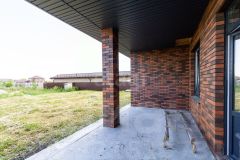 Карнизный свес и потолок террасы подшиты софитами для кровли.