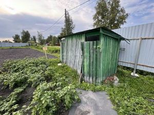 На участке расположен двухэтажный дом из бруса площадью 35 кв. м, баня и сарай — все постройки функциональны и готовы к эксплуатации. Территория частично огорожена забором из крашеного профнастила, соседи проживают здесь круглогодично, что добавляет безопасности и уюта.