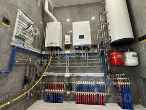 Сердце дома это бойлерная собранная исключительно на нержавейке фирмы VALTEC (ни каких полипропиленовых труб и прочего... ). Установлено два котла фирмы Baxi Италия газовый + резервный электрокотел на 14кв + инверторный стабилизатор Baxi, бойлер на 150литров. Лучшие циркуляционные насосы Grundfos. Теплые полы во всем доме выполнены из Pex трубы с кислородным слоем Stout, водоразводка из трубы TECE, всё так же на фитингах фирмы TECE. У каждого помещения в доме свой контур теплого пола продублированный панельными радиаторами отопления, всё это под управлением системы Zont 2000 pro. Вы можете удаленно настраивать температуру теплого пола, температуру радиаторов, можете включать или выключать каждый радиатор по отдельности, или можно просто выставить желаемую температуру и вообще забыть про это, автоматика всё будет сама!