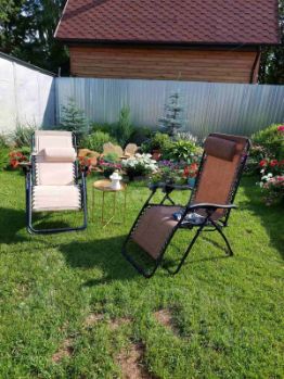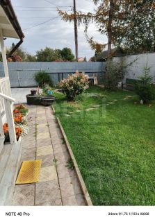 Земельный участок оформлен с заботой: выложенные тротуарной плиткой дорожки, зеленый газон и цветы создают атмосферу гармонии с природой. Для вашего удобства предусмотрено парковочное место.