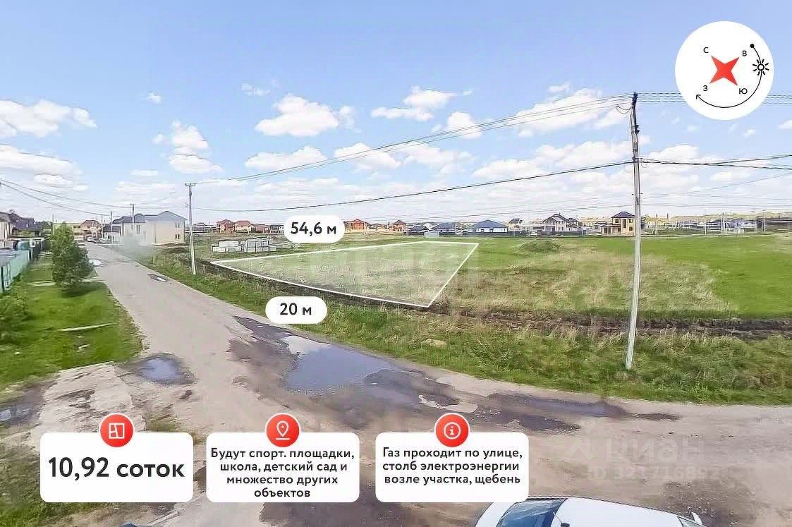Не упустите шанс стать частью быстро развивающейся инфраструктуры! В ближайшие годы здесь появятся детский сад, школа, спортивные площадки и множество других объектов, которые сделают вашу жизнь комфортной и насыщенной. В данный момент активно ведутся работы по строительству асфальтированных дорог, а рядом с участком проходят столбы с электричеством. Газопровод проходит вдоль улицы, имеется возможность подключения. Также планируется подключение центрального водоснабжения.