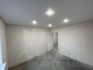 Стяжка, стены под маяк, теплые полы а так же уже выполнены работы по натяжному потолку, установлены светильники. Так же будут установлены межкомнатные двери.