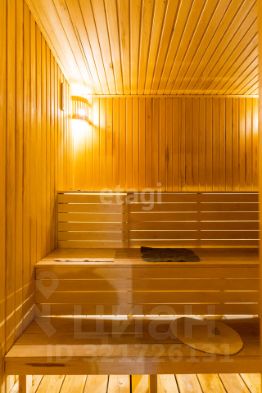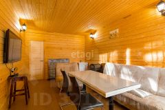На участке расположен новый двухэтажный банный комплекс площадью 45 м2 с просторной комнатой отдыха и террасой 18 м2. На 2 этаже банного комплекса расположена комната 8 м2 для обслуживающего персонала (сторож, горничная и т.д.).