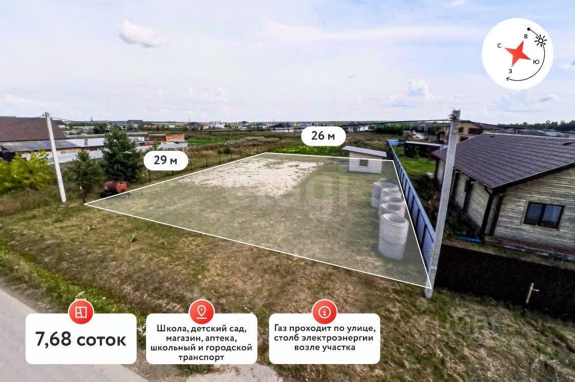 • Электричество и газ проходят прямо по границе участка — подключение без проблем.