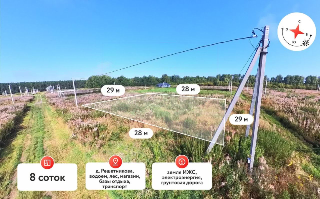 Земельный участок 8 соток в д. Решетникова — для вашего будущего дома