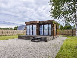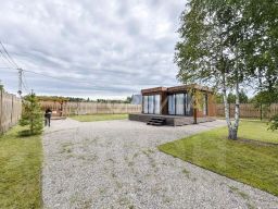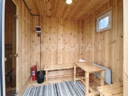 Дом площадью 36 м² прекрасно подходит для круглогодичного проживания: установлен полный контур тёплого пола и отопление электрические конвекторы. Есть система "умный дом", которой удобно управлять дистанционно через Wi-Fi.