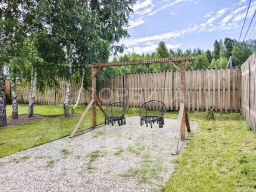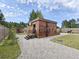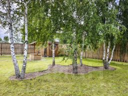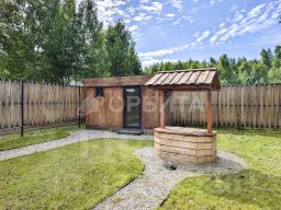 Участок площадью 6,05 соток правильной прямоугольной формы, полностью благоустроен. На территории расположены сауна с электропечью, беседка, мангальная зона и качели. Водоснабжение из собственного колодца. Установлен септик.