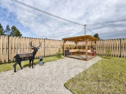 В доме всё готово для комфортной жизни: двуспальная кровать, мягкий диван, полностью укомплектованная кухня, проектор и телевизор. В ванной комнате установлена вся необходимая сантехника.