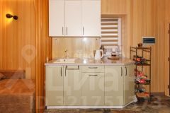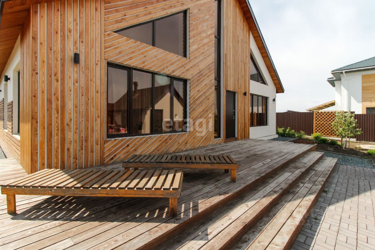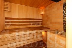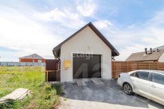На территории, помимо дома, находится баня и гараж. Все постройки выполнены в едином стиле. В бане есть застекленная веранда с зоной барбекю и комната отдыха.