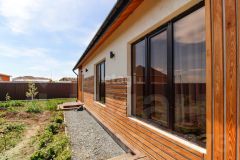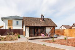 Дом формата 3+ состоит из кухни-гостиной, хозяйский и гостевой спальни, детской, 2 санузлов и котельной, совмещенной с постирочной. Также есть мансардный этаж, пространство которого можно организовать по своему усмотрению.