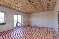 Отделка: улучшенная черновая. Стены белые, оштукатурены и зашпатлеваны, подготовленные под обои. Пол теплый водяной по всему дому. Залита стяжка. Электрика разведена по дому, розеток достаточно во всех комнатах.