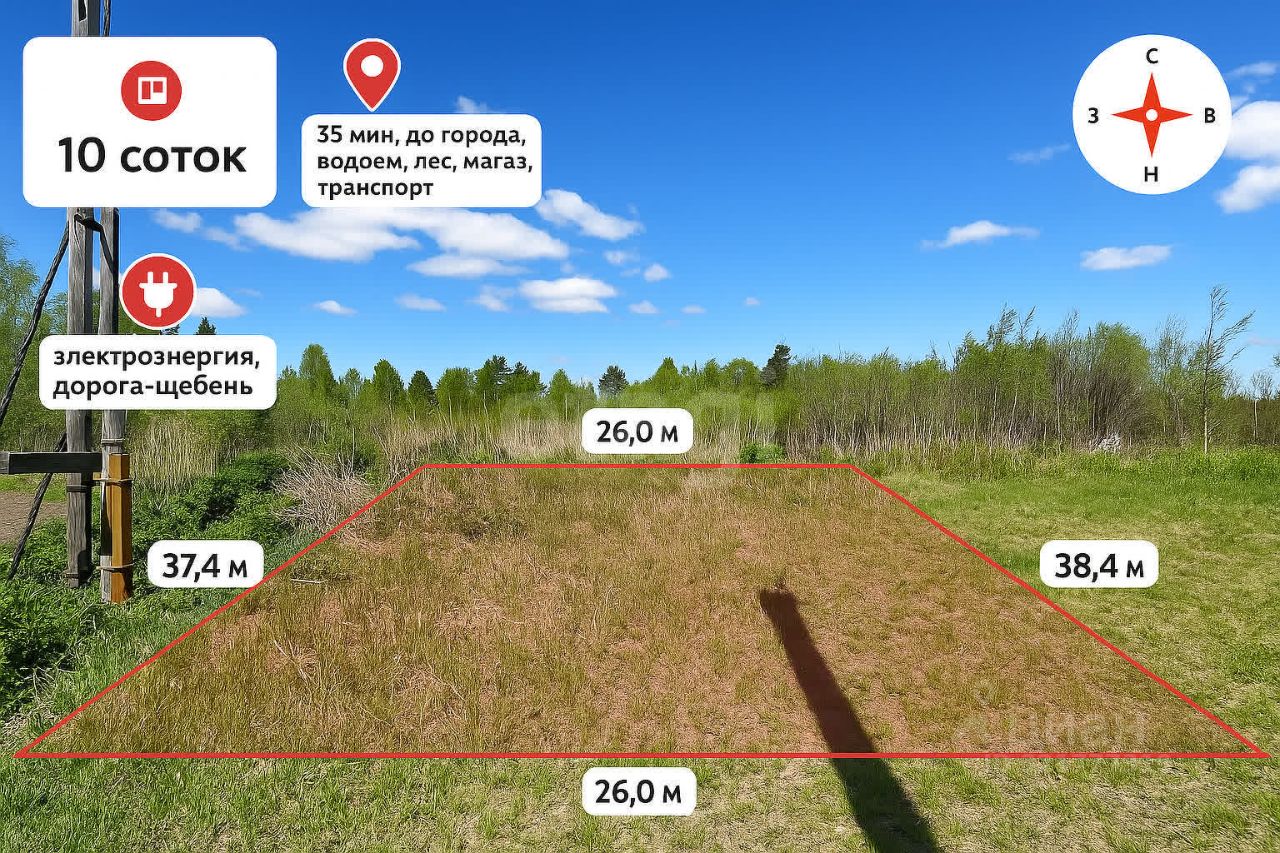 Площадь участка 10 соток, хорошее место, вокруг лес.