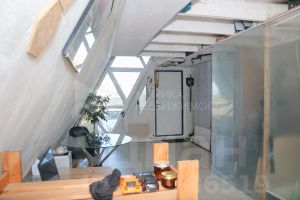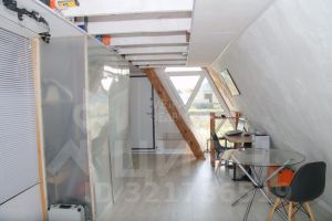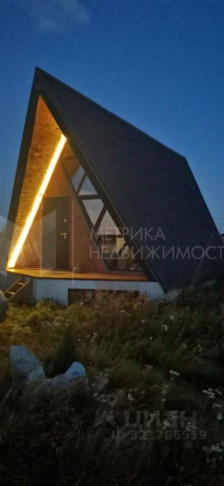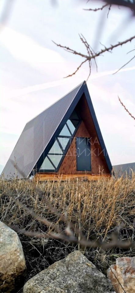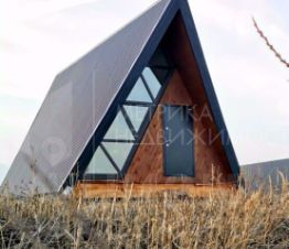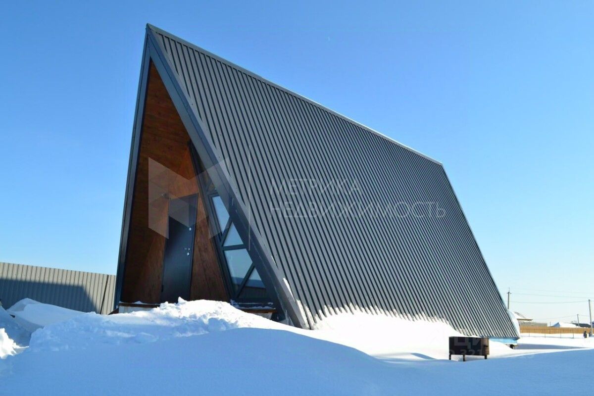 Данный дом выполнен по современной технологии в форме А-фрейм. Дом формата кухня-гостиная, сан. узел и мансардный этаж, сделана лестница.