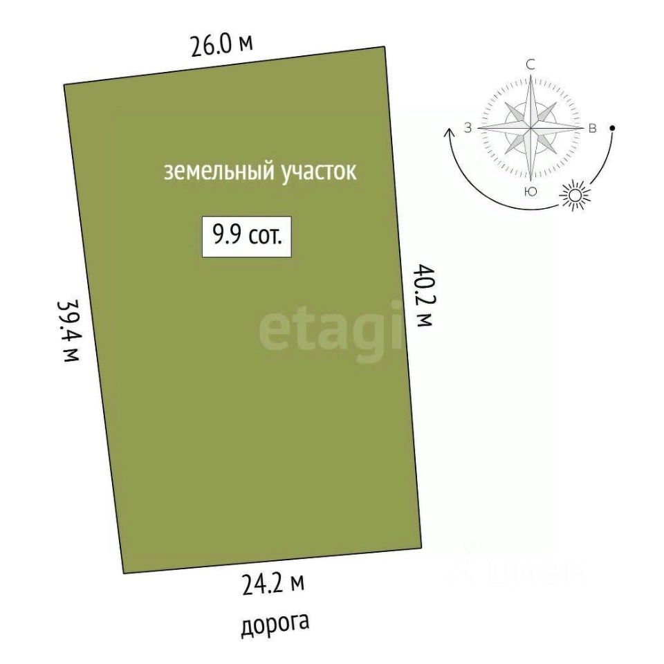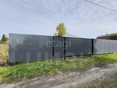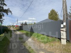 Участок десять соток правильной формы. Участок полностью огорожен забором , цвета графит , выдвижные ворота.