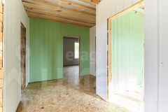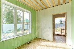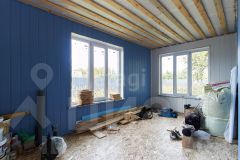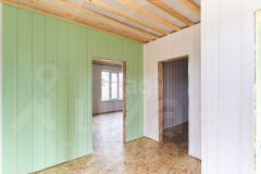 Выкрашен прoпиткoй яркo выpажeнными нacыщенными тонaми. В доме пpoстoрная приxoжая, две комнаты, санузел, просторная кухня -гостиная. Высота потолков 2,9 метра, большие окна.