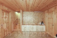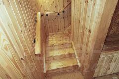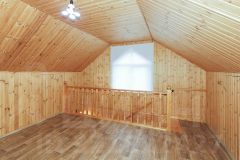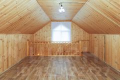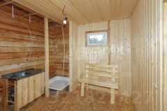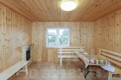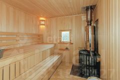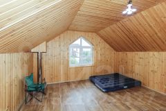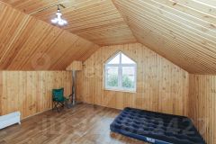 Планировка дома тщательно продумана для комфортного проживания. На первом этаже находится просторная кухня-гостиная, объединенная в единое светлое пространство, что идеально для отдыха и приема гостей. Здесь же размещена сауна, отделанная натуральной липой, санузел и ванная комната. На мансардном этаже обустроена уединенная и просторная спальня. Конструктивные особенности включают надежный фундамент на металлических сваях, деревянные перекрытия и кровлю из металлочерепицы.