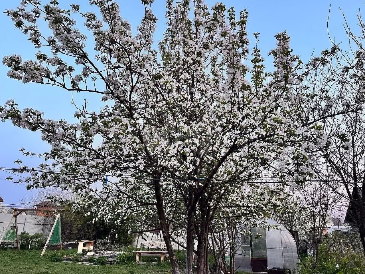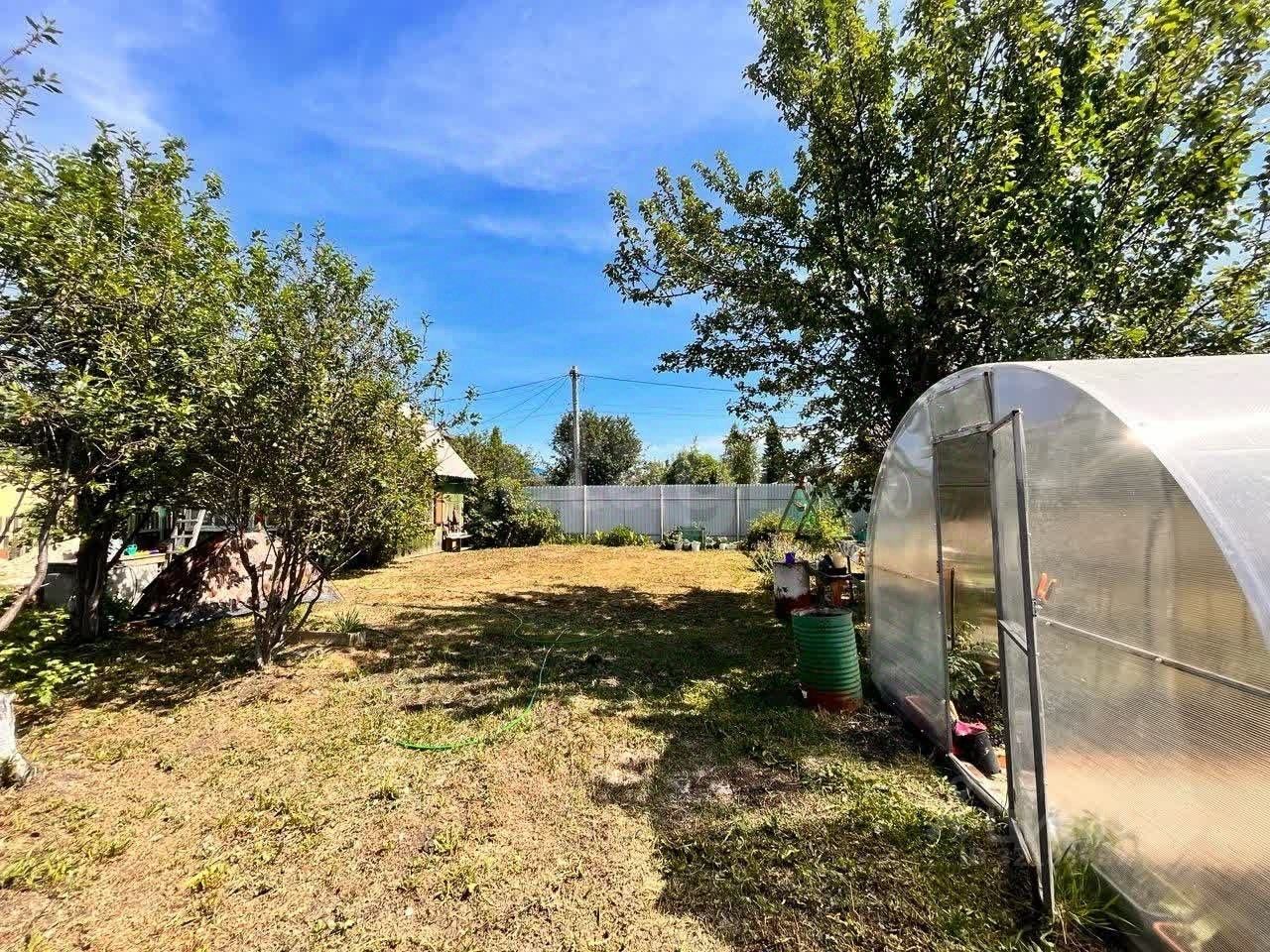 На участке растут плодоносящие деревья: яблони, вишни, сливы и ирга, а также кустарники (смородина, крыжовник) и многолетние цветы. Плодородная земля позволит вырастить всё, что только пожелаете. Теплица, перекрытая в 2023 году, готова к новым посадкам.