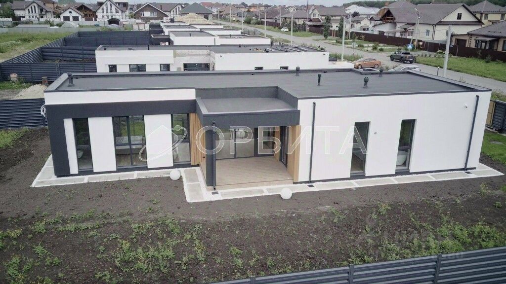 В доме готовый дизайнерский ремонт, установлена необходимая мебель и бытовая техника. Система умного дома даст вам возможность дистанционно следить за безопасностью и гибко регулировать климат. Две спальни расположены при входе в дом и ещё одна мастер-спальня находится в конце дома, которая отделена от остальной части большой кухней-гостиной.